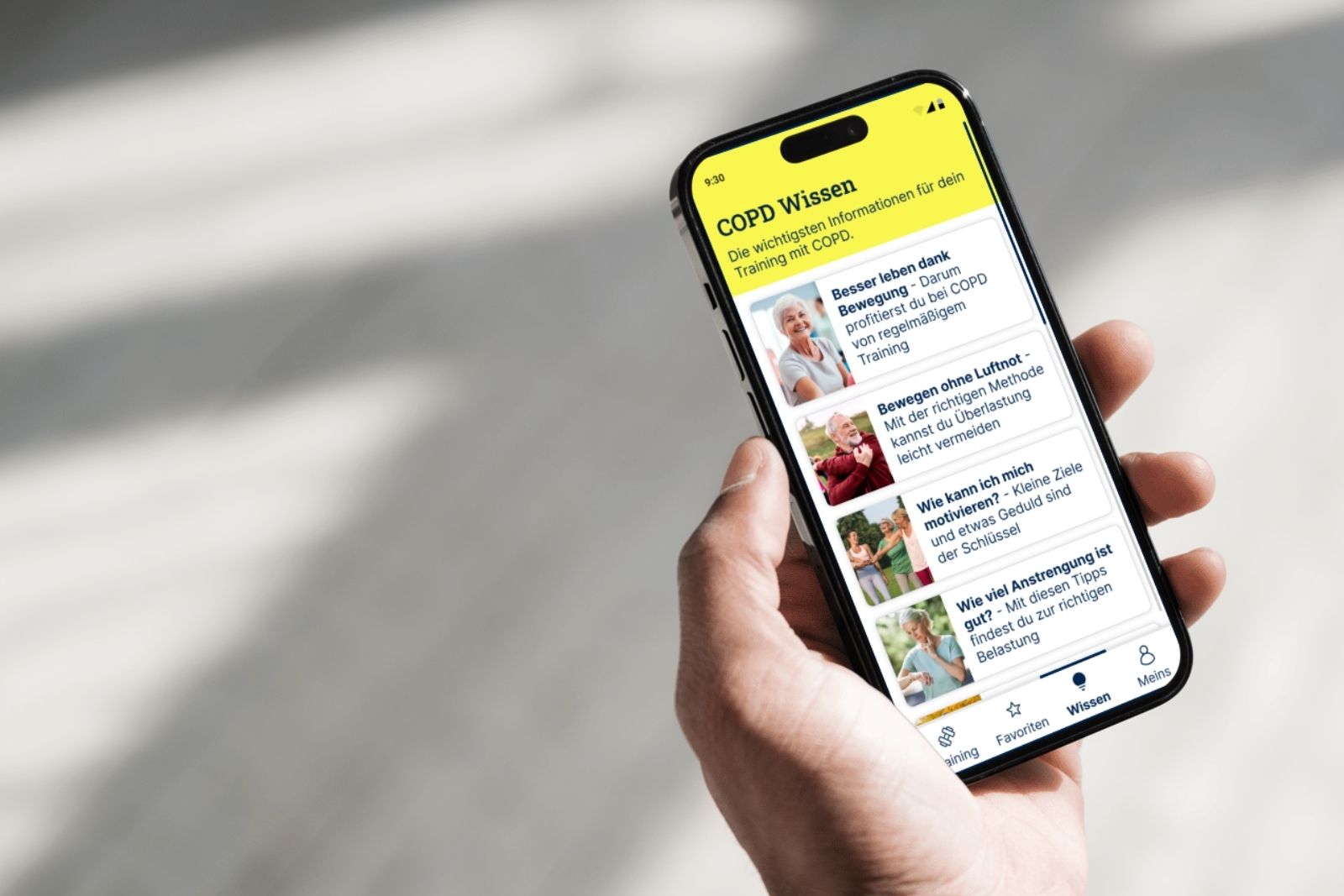 Der „COPD Fitmacher“ ist weit mehr als eine Trainings-App: Sie vermittelt auch Wissen rund um die Erkrankung. Auf einer eigenen Wissensseite finden Patient:innen verständlich aufbereitete Informationen zu Symptomen, Therapien und gesundheitsfördernden Maßnahmen. Diese Wissensvermittlung fördert Eigenverantwortung und stärkt das Verständnis für den eigenen Körper – ein entscheidender Faktor, um langfristig aktiv zu bleiben.